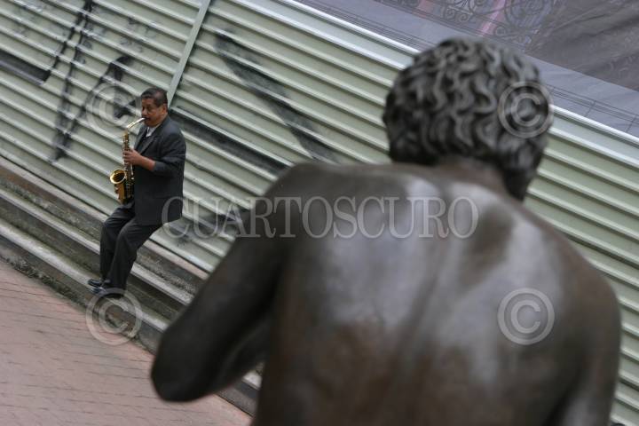 MÉXICO, D.F., 21FEBRERO2010.- Un saxofonista se gana la vida tocando un poco blues en la avenida Juárez enfrente de la Alameda Central. FOTO: MISAEL VALTIERRA/CUARTOSCURO.COM