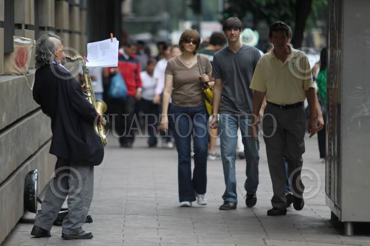MÉXICO, D.F., 04AGOSTO2011.- Debido al incremento del desempleo en el país, un hombre de la tercera edad se ve en la necesidad de ganarse unas monedas tocando su saxofón sobre las calles del Centro Histórico. FOTO: DIEGO SIMÓN SÁNCHEZ/CUARTOSCURO.COM