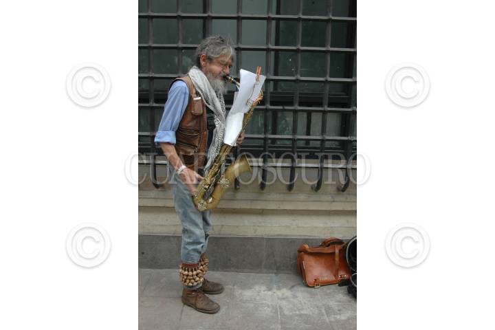 MÉXICO, D.F., 04JULIO2010.- Un músico callejero toca el saxofón en calles del Centro Histórico a cambio de una monedas. FOTO: RODOLFO ANGULO/CUARTOSCURO.COM