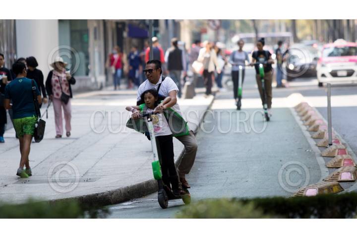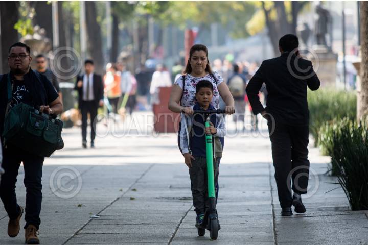 CIUDAD DE MÉXICO, 31MARZO2019.- Cada vez son más las personas que obtan por transportarse en patines eléctricos, desafortunadamente algunos de los usuarios no toman las medidas necesarias para viajar en este tipo de vehículos, conduciendo sobre las banquetas o viajando en sentido contrario sobre las calles. FOTO: RODRIGO RUBIO /CUARTOSCURO.COM