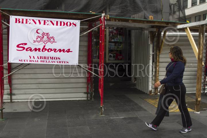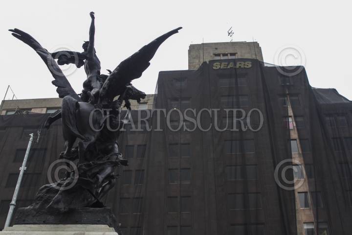 CIUDAD DE MÉXICO, 18OCTUBRE2017.- Sobre avenida Juárez se observa el edificio de la tienda Sears cubierto con una tela negra, este inmueble resultó dañado por el sismo del pasado 19 de septiembre, y esta siendo sometido a una remodelación, su restaurante ya anuncia que esta dando servicio. FOTO: MOISÉS PABLO /CUARTOSCURO.COM