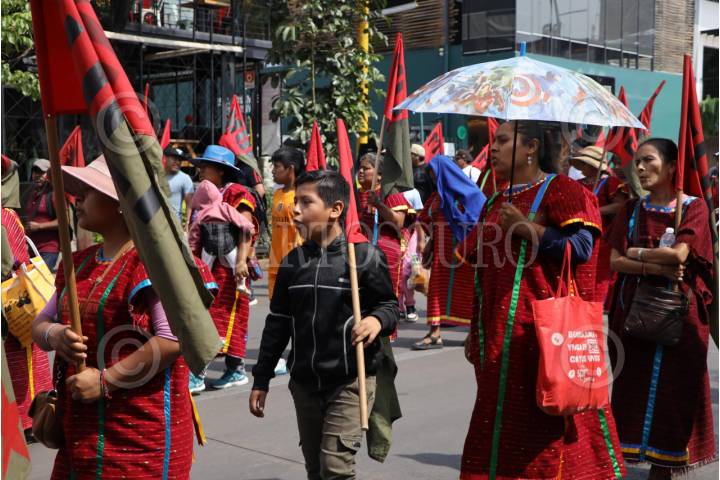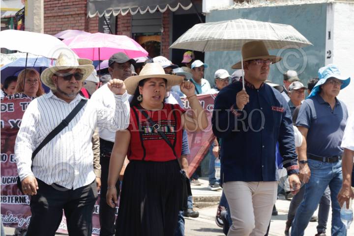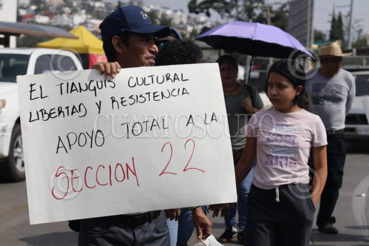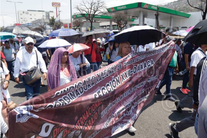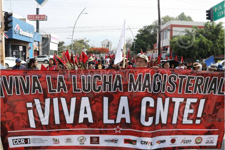 OAXACA DE JUÁREZ, OAXACA, 23MAYO2025.- Integrantes de organizaciones sociales marcharon en la capital de Oaxaca en apoyo a la Sección 22 de la Coordinadora Nacional de Trabajadores de la Educación (CNTE) que inició un paro de labores del pasado 15 de mayo. Durante la manifestación, criticaron el trato que le ha dado la presidenta de la República, Claudia Sheinbaum a la CNTE. En el estado más de 800 mil alumnos de educación básica han permanecido sin clases. FOTO: CAROLINA JIMÉNEZ/CUARTOSCURO.COM
