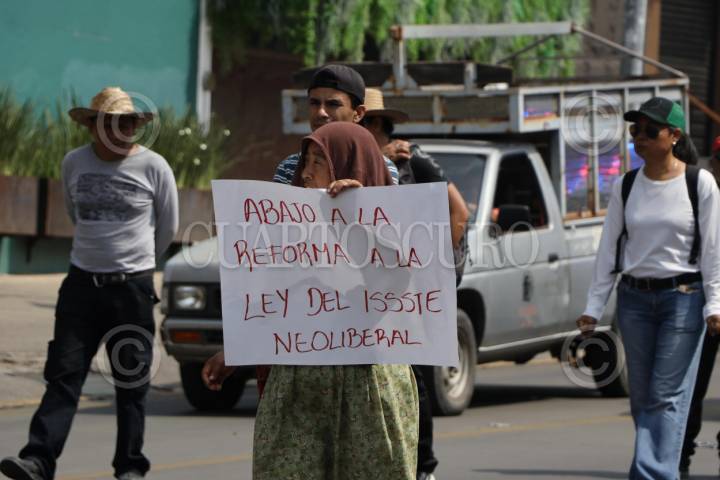 OAXACA, OAXACA, 19SEPTIEMBRE2025.- Integrantes de la Sección 22 de la Coordinadora Nacional de Trabajadores de la Educación (CNTE) se manifestaron por la visita de la presidenta Claudia Sheinbaum Pardo a Oaxaca. Los profesores marcharon a inmediaciones del estadio de fútbol del Instituto Tecnológico (ITO) en donde se realizaría el acto presidencial, para reclamar la abrogación de la Ley del ISSSTE y otros derechos laborales. FOTO: CAROLINA JIMÉNEZ MARISCAL/CUARTOSCURO.COM