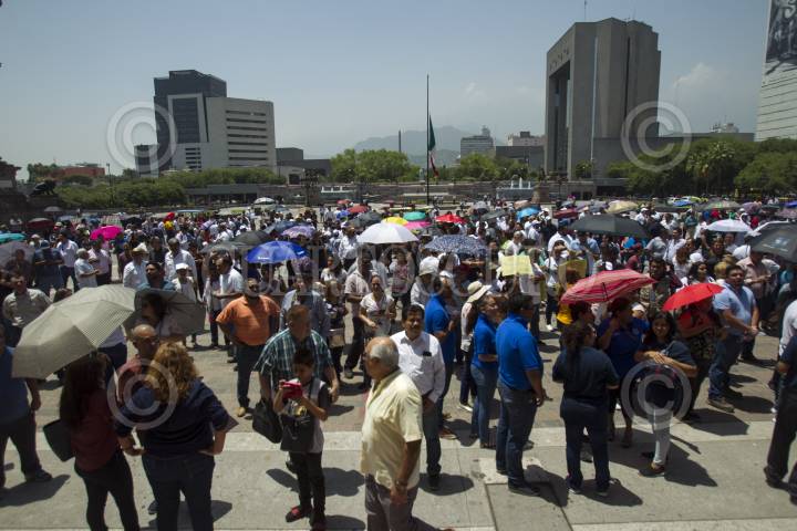 MONTERREY, NUEVO LEÓN, 30JULIO2019.- Maestros de las Secciones 21 y 50 protestaron en el Palacio de Gobierno para exigir basificación de los trabajadores maestros, intendentes, bibliotecarios y contralores que laboran en un centro educativo bajo contratos, los cuales no cuentan como antigüedad, prestaciones, servicio médico ni pagos puntuales. Representantes de ambos sindicatos fueron recibidos por autoridades estatales para dialogar con ellos. FOTO: GABRIELA PÉREZ MONTIEL /CUARTOSCURO.COM