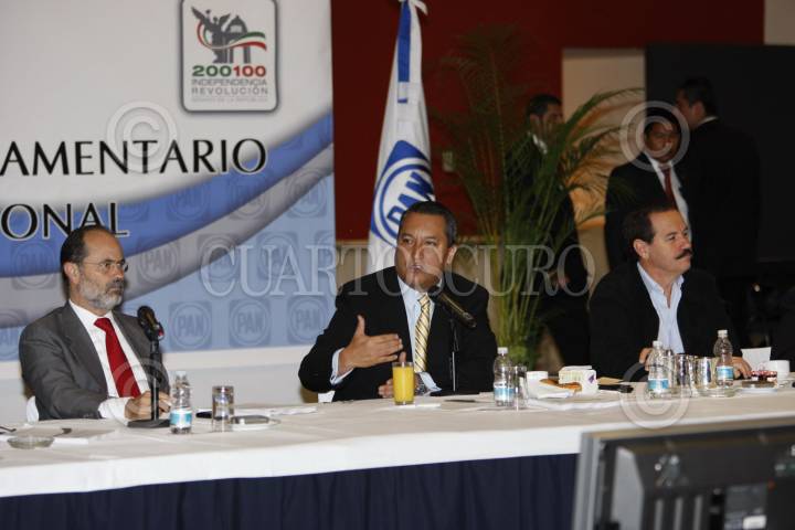 MÉXICO, D.F., 20AGOSTO2010.- Gustavo Madero, senador del PAN junto a Francisco Blake Mora, Secretario de Gobernación y el senador Juan Bueno Torio durante la reunión plenaria del Grupo Parlamentario del PAN en el senado de la República. FOTO: CUARTOSCURO.COM