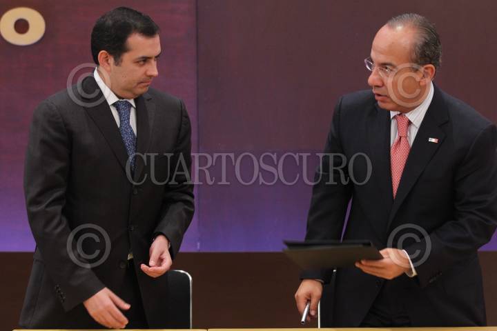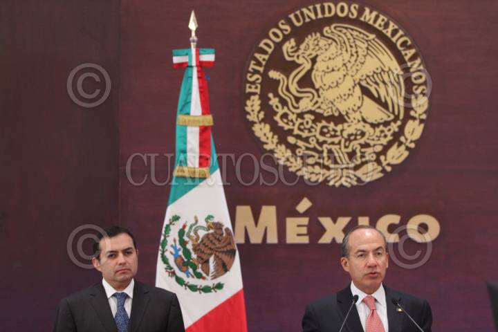 MÉXICO, D.F., 24FEBRERO2011.- Ernesto Cordero Arroyo, Secretario de Hacienda y Crédito Público; y Felipe Calderón Hinojosa, presidente de México; anunciaron incentivos fiscales para el sector agrícola que fue afectado por las heladas en el estado de Tamaulipas. FOTO: IVÁN STEPHENS/CUARTOSCURO.COM