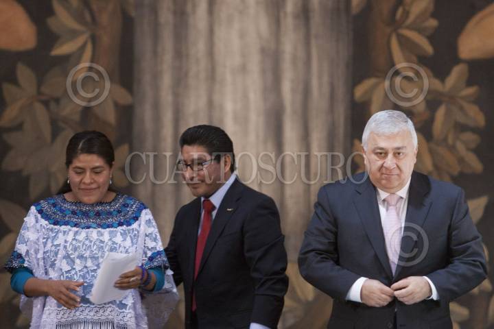 MÉXICO, D.F., 13MARZO2013.- Eufrosina Cruz Mendoza, presidenta de la Comisión de Asuntos Indígenas de la Cámara de Diiputados; Javier López Sánchez, Director General del Instituto Nacional de Lenguas Indígenas; y Emilio Chuayffet Chemor, Secretario de Educación Pública; presentaron la traducción de la Constitución Política de los Estados Unidos Mexicanos en diez lenguas indígenas. FOTO: IVÁN STEPHENS /CUARTOSCURO.COM