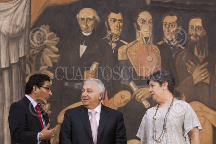MÉXICO, D.F., 13MARZO2013.- Javier López Sánchez, Director General del Instituto Nacional de Lenguas Indígenas; Emilio Chuayffet Chemor, Secretario de Educación Pública; y Alba Martínez Olivé, Subsecretaria de Educación Básica, presentaron la traducción de la Constitución Política de los Estados Unidos Mexicanos en diez lenguas indigenas. FOTO: IVÁN STEPHENS /CUARTOSCURO.COM