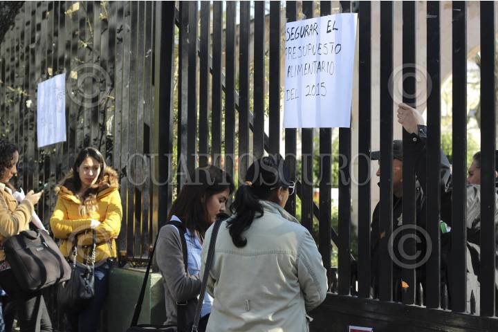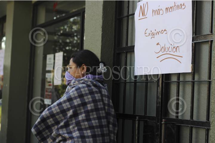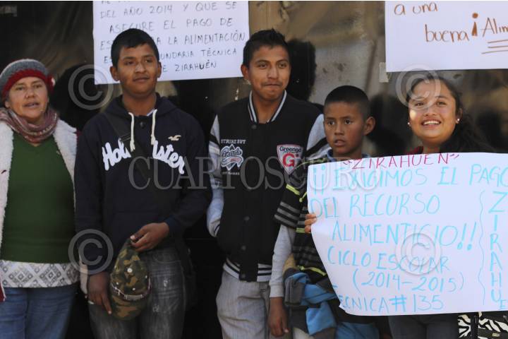 MORELIA, MICHOACÁN, 12ENERO2015.- Padres de familia y autoridades de la Secundaria Comunitaria Técnica número 135 de Zirahuén, encabezados por el director del plantel, tomaron las instalaciones de la Secretaría de Finanzas y Administración para exigir el pago de al menos 350 mil pesos por concepto de alimentación que se les adeuda desde el ciclo fiscal 2014. La escuela fue construida en 2003 por la población indígena a base de trabajo colectivo. FOTO: JUAN JOSÉ ESTRADA SERAFÍN /CUARTOSCURO.COM