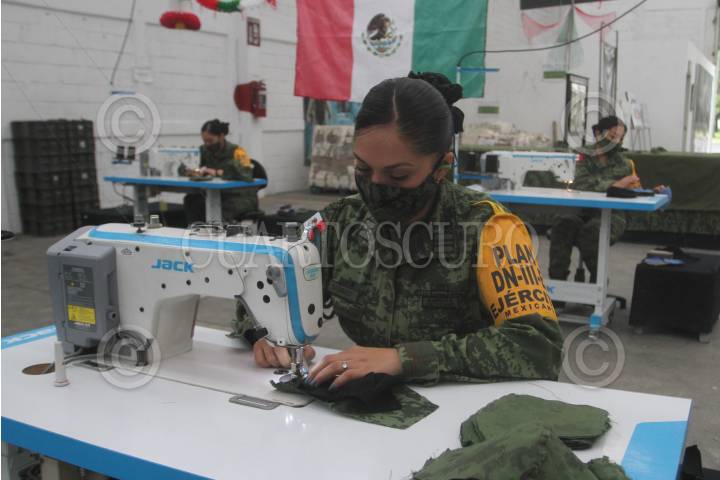 Elementos de la Secretaría de Defensa Nacional (SEDENA) comenzaron a confeccionar la producción de aproximadamente 20 mil cubrebocas para los militares que participarán en el Desfile Militar del próximo 16 de septiembre en el Zócalo capitalino