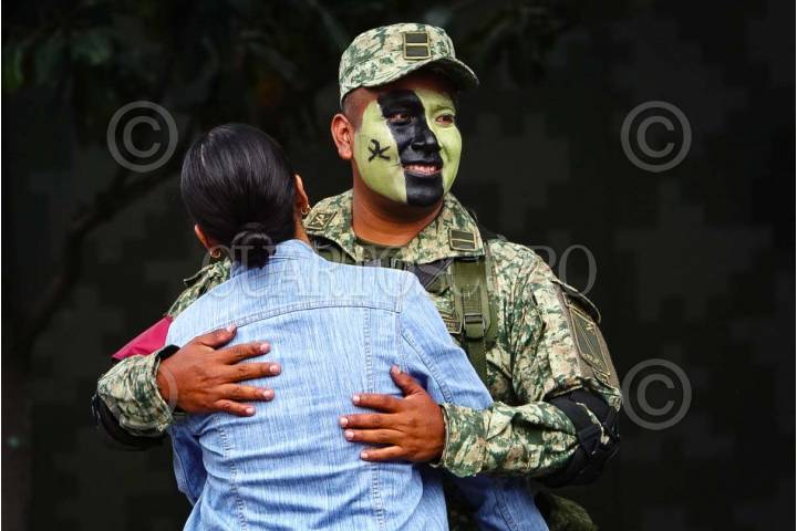 CIUDAD DE MÉXICO, 16SEPTIEMBRE2023.- Mujeres y hombres, pertenecientes a las corporaciones de Secretaría de Defensa Nacional, Guardia Nacional y Marina Nacional, durante la espera en calles aledañas a Plaza de la Constitución Mexicana previo al Desfile Militar del Día de Independencia. Cabe mencionar que durante la espera, integrantes de dichas corporaciones aprovecharon para saludar a familiares, afinar los últimos detallese incluso tomar un refrigerio. FOTO: ROGELIO MORALES /CUARTOSCURO.COM