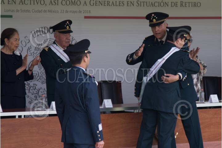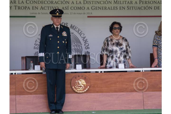 CIUDAD DE MÉXICO, 22MAYO2018.- Salvador Cienfuegos Zepeda, secretario de la Defensa Nacional, encabezó la ceremonia de Condecoración a la Distinción Militar, en la que se reconoció a 23 generales que se encuentran en la honrosa situación de retiro, además 6 generales, 3 jefes, 3 oficiales y 7 de tropa en servicio activo, siendo un total de 42 militares recompensados. FOTO: MARIO JASSO /CUARTOSCURO.COM