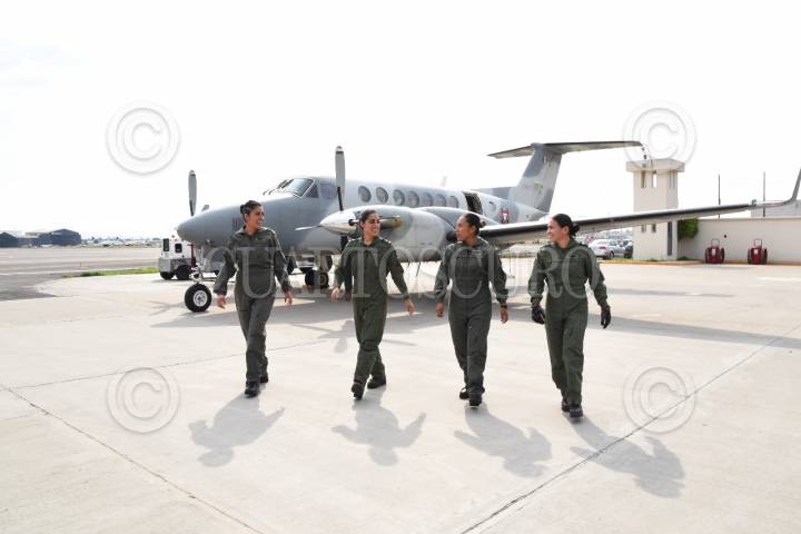 CIUDAD DE MÉXICO, 05JUNIO2019.- Por primera vez en la Secretaría de Marina-Armada de México, se crea una tripulación integrada por cuatro mujeres que se desempeñan como piloto, copiloto, enfermera de vuelo y mecánico, en un avión KING AIR 350, la cual lleva a cabo Operaciones de Ambulancia Aérea. Dicha tripulación se encuentra integrada por la piloto Teniente de Corbeta Sofía Teresa Flores Vázquez, quien es asistida por su copiloto, la Teniente de Corbeta Susana Vázquez García, la enfermera de vuelo Teniente de Corbeta Lakhrir Singh Ortega y la Cabo Leslie Pineda Ortiz mecánica de aviación, quienes se encargan de trasladar pacientes en apoyo a la población civil en casos y zonas de desastres, así como en emergencias médicas. FOTO: SEMAR /CUARTOSCURO.COM