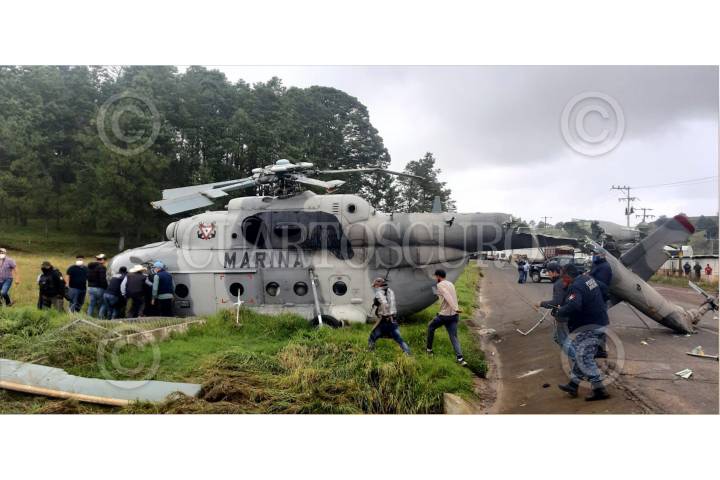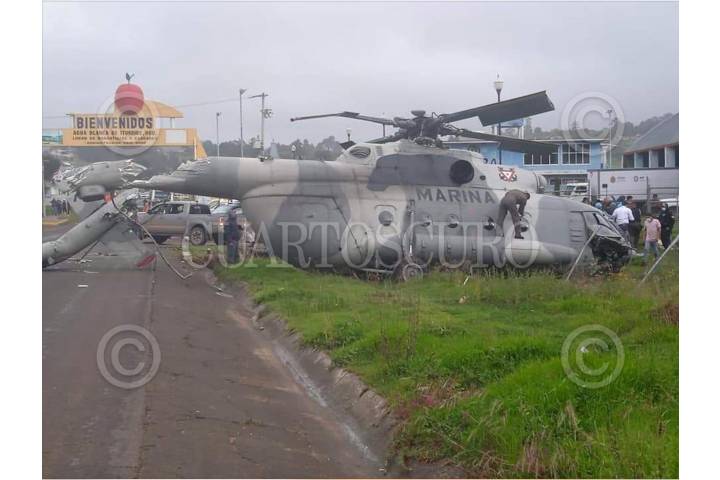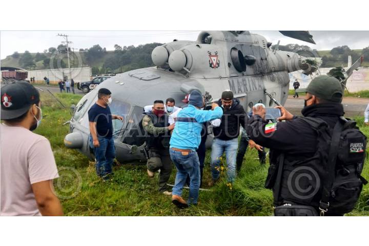 Un helicóptero de la Secretaría Marina se desplomó en Agua Blanca en Hidalgo, la aeronave logró aterrizar de emergencia, ninguno de sus 20 resulto herido de gravedad.