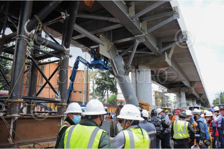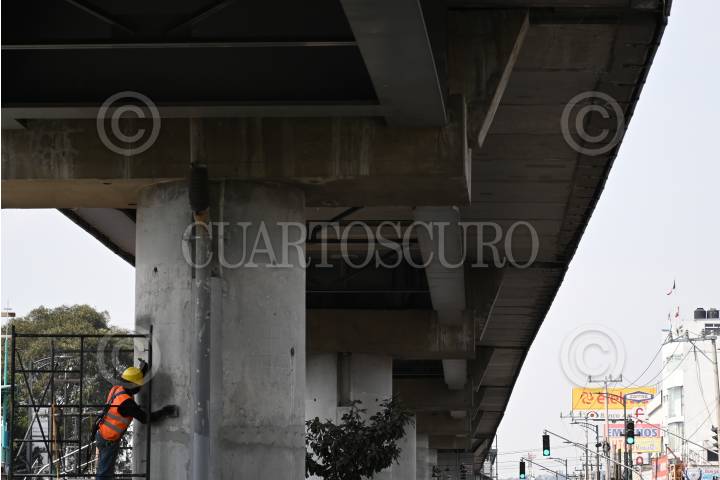 Trabajos de rehabilitación de columnas de la Línea 12 del metro.