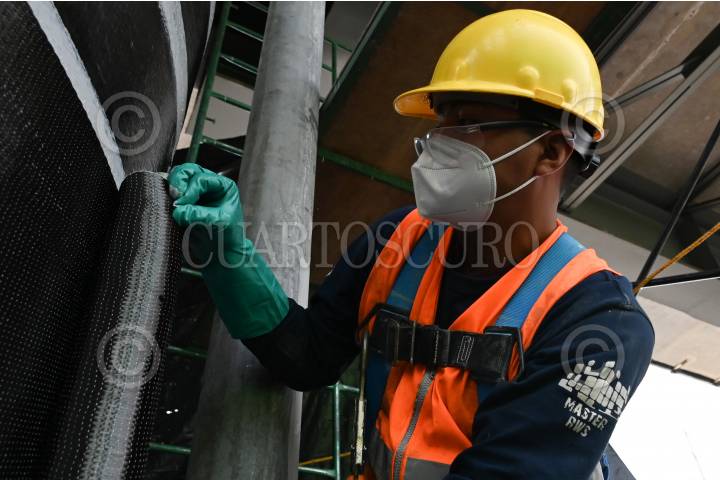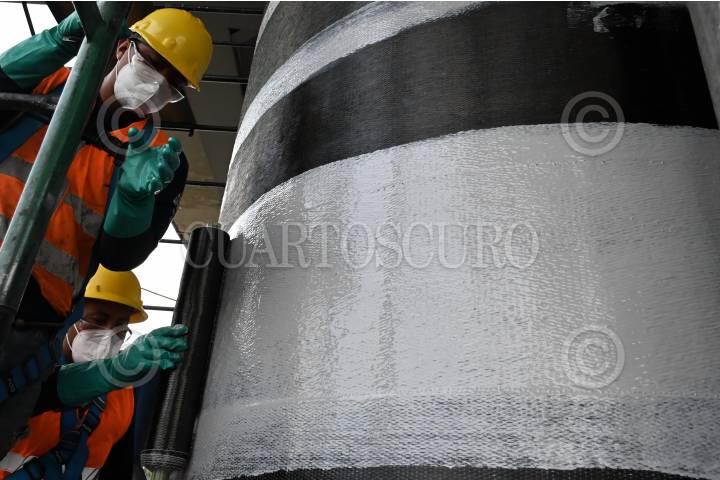 Ante el descubrimiento de más de 100 grietas a lo largo del recorrido de la Línea 12 del metro, se restauran las columnas de dicha estructura.