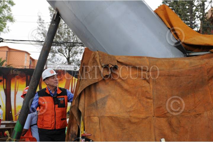Guillermo Calderón Aguilera, director del Metro, supervisa los trabajos en el nuevo soporte.