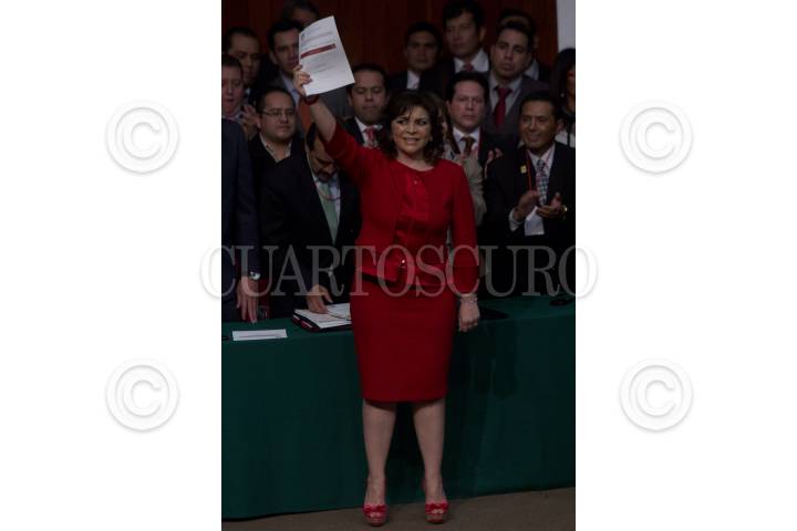MÉXICO, D.F., 11DICIEMBRE2012.- Ivonne Ortega durante su registro como candidata a la Secretaria General del PRI. FOTO: ENRIQUE ORDÓÑEZ /CUARTOSCURO.COM