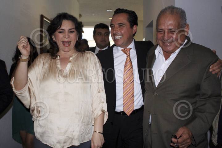 MÉXICO, D.F., 16FEBRERO2012.- El diputado Francisco Rojas, el senador Pedro Joaquin Codwell, presidente nacional del PRI y Cristina Díaz, secretaria general del PRI a su llegada a una conferencia de prensa que ofrecieron a medios de comunicación en el CEN del PRI. FOTO: RODOLFO ANGULO/CUARTOSCURO.COM