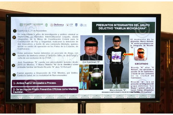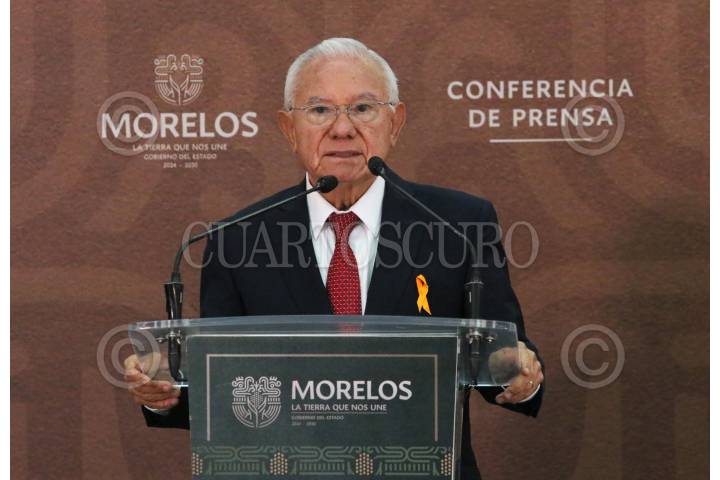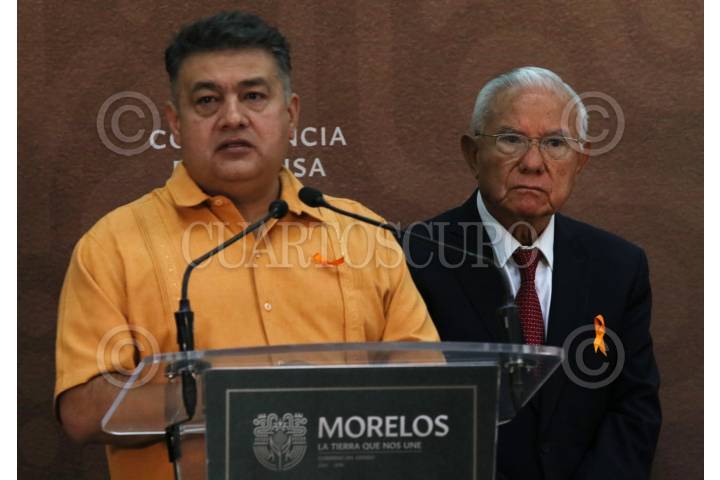 CUERNAVACA, MORELOS, 25NOVIEMBRE2024.- Juan Salgado Brito, secretario de Gobierno, encabezo la conferencia semanal sobre temas de seguridad publica, realizada en el Salón Bicentenario del Palacio de Gobierno. Acompañaron al funcionario, Ángel Urrutia, titular de la Secretaria de Seguridad y Atención Ciudadana. En la conferencia se dio un informe sobre personas procesadas por diversos delitos acaecidos en los últimos quince días y sobre el secuestro de una personalidad de la televisión y su liberación el pasado sábado en este ciudad. FOTO: MARGARITO PÉREZ RETANA/CUARTOSCURO.COM