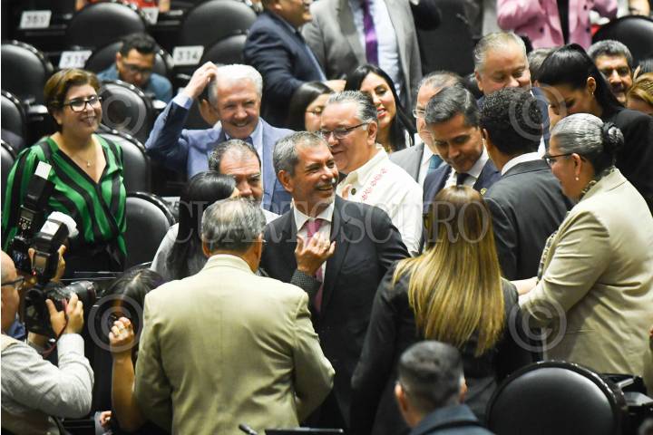 CIUDAD DE MÉXICO, 12MARZO2025.- Con 419 votos a favor, durante la sesión ordinaria de la Cámara de Diputados, fueron ratificados Édgar Amador Zamora, como secretario de Hacienda y Crédito Público; Carlos Gabriel Lerma, subsecretario de Hacienda y Crédito Público, y Roberto Carlos Fernández, tesorero de la Federación. Los acompañan los integrantes de la mesa directiva: Sergio Gutiérrez Luna, María del Carmen Pinete, Kenia López Rabadán, Julieta Villalpando y Dolores Padierna. FOTO: MARIO JASSO/CUARTOSCURO.COM