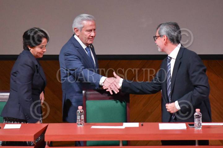 CIUDAD DE MÉXICO, 13NOVIEMBRE2024.- Funcionarios de Hacienda tomaron protesta luego de ser ratificados en sus cargos por la presidenta, Claudia Sheinbaum, los funcionarios encabezados por Pablo Gómez, de la UIF, acompañarán a Rogelio Ramírez de la O durante el sexenio. FOTO: DANIEL AUGUSTO/ CUARTOSCURO.COM