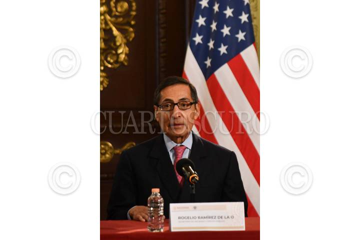 CIUDAD DE MÉXICO, 06DICIEMBRE2023.- Rogelio Ramírez de la O, secretario de Hacienda y Crédito Público, durante conferencia en el salón Panamericano de Palacio Nacional para informar sobre sus avances en la cooperación bilateral en materia de economía y seguridad. FOTO: MARIO JASSO/CUARTOSCURO.COM