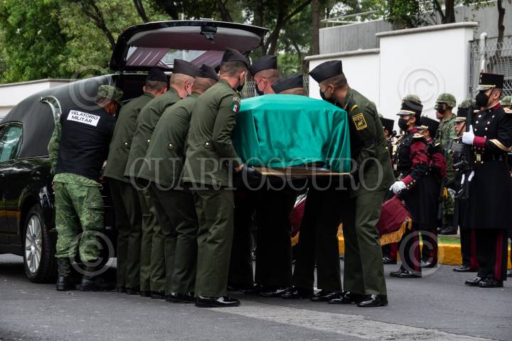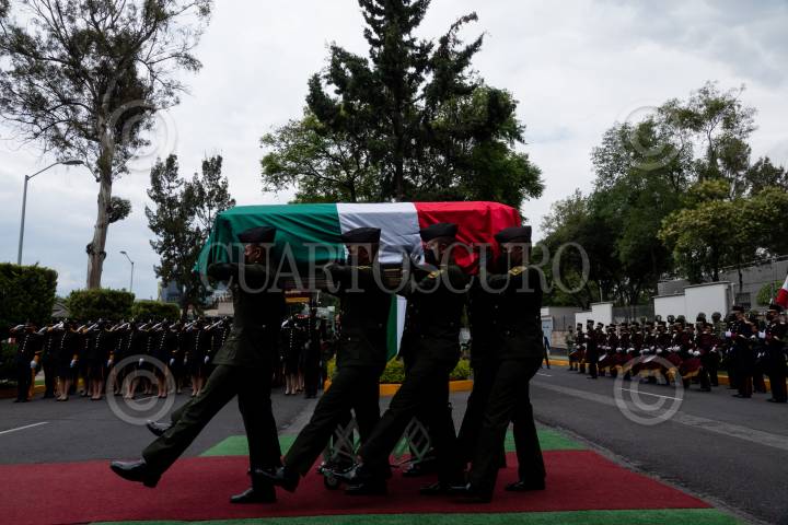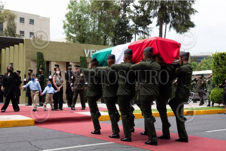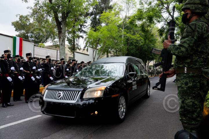 Arribo del cuerpo del general Gerardo Clemente Ricardo Vega García a los Velatorios Militares en la Unidad Militar, en Miguel Hidalgo.