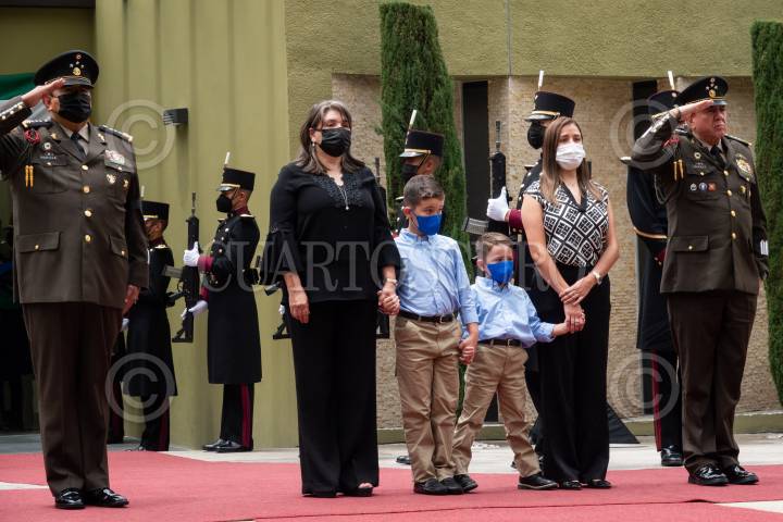 Militares montan guardia frente a los Velatorios Militares en la Unidad militar previo al arribo del cuerpo del general Gerardo Clemente Ricardo Vega García,