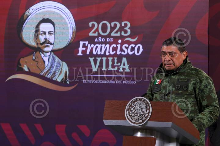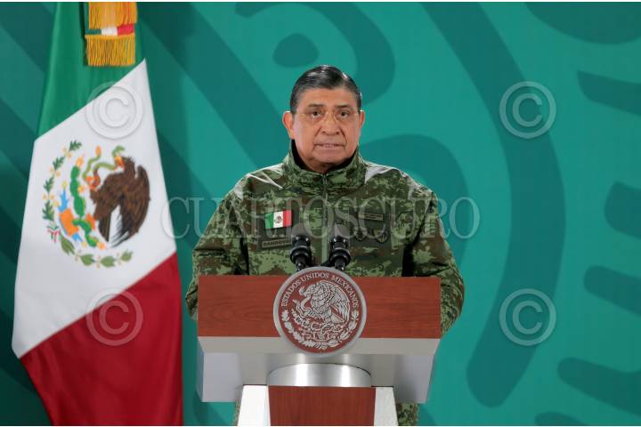 Luis Cresencio Sandoval, secretario de la Defensa Nacional, durante la conferencia mañanera en Tamaulipas.