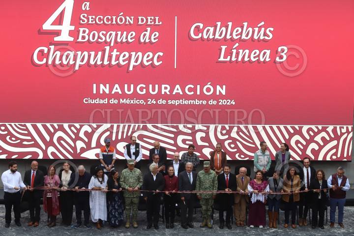 CIUDAD DE MÉXICO, 24SEPTIEMBRE2024. General Salvador Fernando Cervantes Loza, Lic. Miguel Torruco Marqués, Secretario de Turismo; Gral. Luis Cresencio Sandoval, Secretario de la Defensa Nacional; Alejandra Frausto, Secretaria de Cultura; Claudia Sheinbaum Presidenta Electa, el presidente de la República, Andrés Manuel López Obrador; Martín Batres Guadarrama, Jefe de Gobierno de la Ciudad de México; Clara Brugada Jefa de Gobierno Electa; Luisa María Alcalde, Secretaria de Gobernación; Raquel Buenrostro Secretaria de Economía; María Nuñez Bespalova, entre otros Subsecretaria de Cultura durante la inauguración de la 4ta Sección del Bosque de Chapultepec y Cablebús Línea 3, en el Foro al aire libre de la Cineteca Nacional Chapultepec de la colonia Pueblo de Santa Fe. FOTO: EDGAR NEGRETE LIRA/CUARTOSCURO.COM