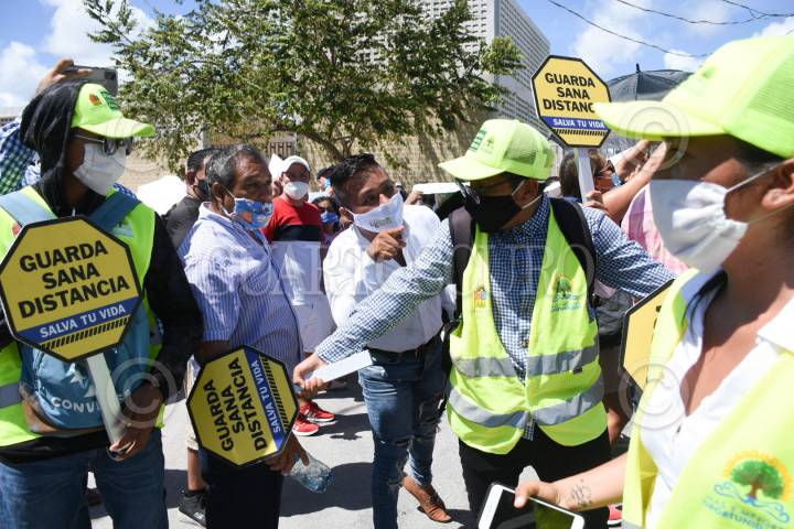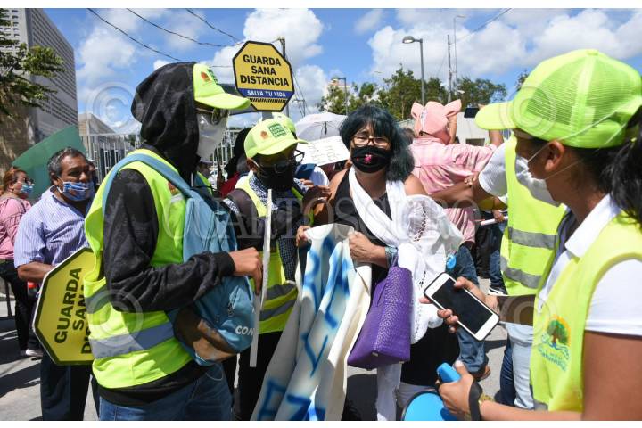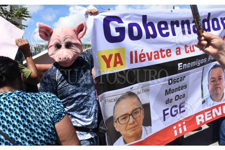 Ciudadanos disfrazados de ratas se manifestaron durante el evento que encebezó el Ejecutivo para pedir la renuncia del Óscar Montes de Oca y Alberto Capella, ambos encargados de la seguridad del estado de Quintana Roo.