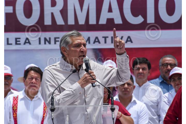 Adán Augusto López, Secretario de Gobernación integrante de MORENA durante el evento “Unidad y Movilización para que siga la Transformación” en la explanada del Teatro Morelos en la Ciudad de Toluca rumbo a las elecciones del 2023 y 2024.