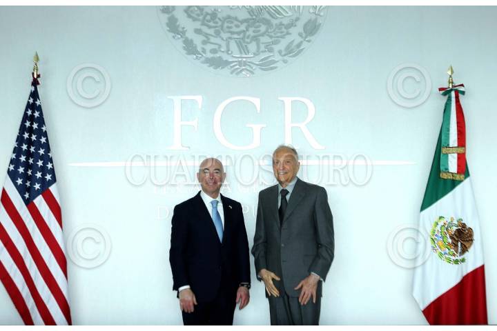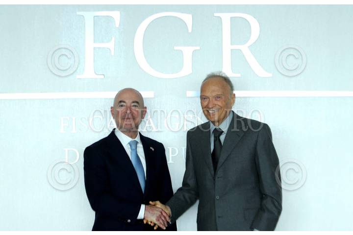 Alejandro Mayorkas, secretario de Seguridad Nacional de los Estados Unidos, junto a Alejandro Gertz, fiscal General de la República, como parte de su visita oficial al país.