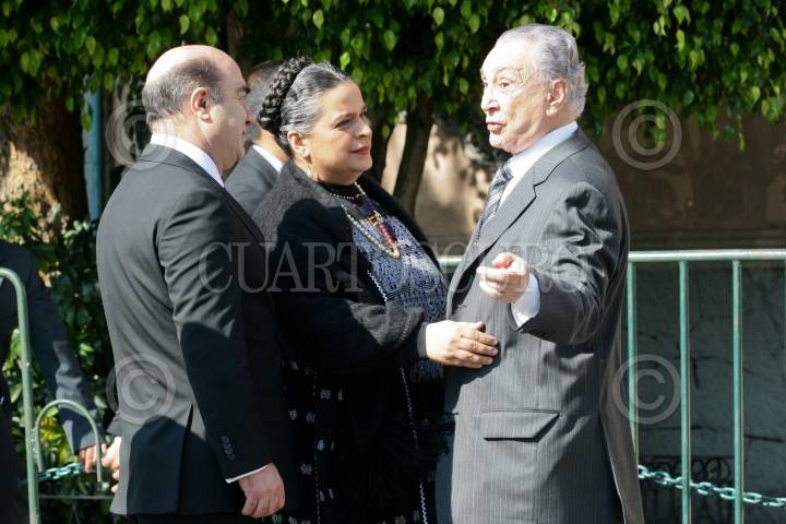 MÉXICO, D.F., 06NOVIEMBRE2008.- La dirigente nacional del PRI, Beatriz Paredes, el senador Jesús Murillo Karam, y el líder de la CTM, Joaquín Gamboa Pascoe, a su salida del homenaje que se rindió en Campo Marte a los funcionarios fallecidos tras el accidente aéreo del pasado martes, entre ellos, el secretario de Gobernación, Juan Camilo Mouriño. FOTO: ISAAC ESQUIVEL/CUARTOSCURO.COM