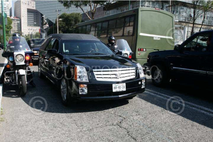 MÉXICO, D.F., 06NOVIEMBRE2008.- Salida del cortejo fúnebre de Campo Marte, donde se rindió un homenaje a los funcionarios fallecidos tras el accidente aéreo del pasado martes, entre ellos, el secretario de Gobernación, Juan Camilo Mouriño. FOTO: ISAAC ESQUIVEL/CUARTOSCURO.COM