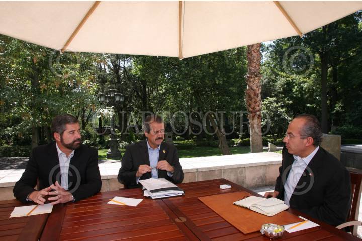 MEXICO D.F. 7MAYO2009. El presidente Felipe Calderón acompañado del secrtario de Salu, José Ángel Cordova Villalobos, se reunio este medio día en la residencia oficial de Los Pinos con los ex secretarios de salud: Juan Ramón de la Fuente , Guillermo Soverón, Jesús Kumate y Antonio Gonzalez. FOTO: ALFREDO GUERRERO/CUARTOSCURO.COM