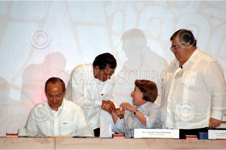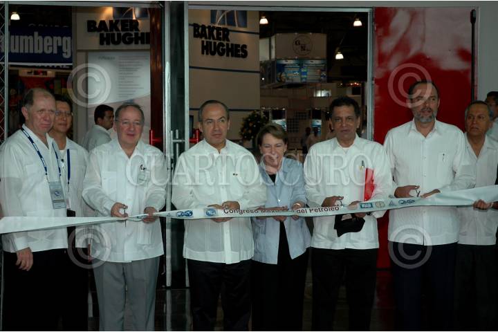 BOCA DEL RÍO, VERACRUZ, 11JUNIO2009.- Fue inaugurado el congreso mexicano del petróleo, denominado "La nueva era del petróleo en México" por el presidente de la república, Felipe Calderón Hinojosa, acompañado por el gobernador del estado, Fidel Herrera Beltrán, así como de la secretaria de energía, Georgina Kessel Martínez, y el director general de PEMEX, Jesús Reyes Heroles. Esto en las instalaciones del World Trade Center de esta ciudad. FOTO: JOSÉ CANDELRAIO/CUARTOSCURO.COM
