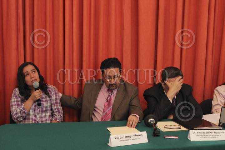 MÉXICO, D.F., 19FEBRERO2013.- En conferencia de prensa convocada por CENCOS se dio a conocer la captura de los tres lideres de la secta internacional llamada "Defensores de Cristo", que operaba físicamente en territorio de Coahuila y Nuevo Laredo desde el 2010. Ignacio González de Arriba alias Maestro Fénix’, Shoukri Elmernessi alias "Tito" de origen español y Losanger José Arenas alias ‘Losito’, venezolano; son acusados de los presuntos delitos de tráfico de órganos, lavado de dinero, reducción de servidumbre, abuso sexual contra mujeres y menores, asociación delictiva, estafa, fraude y ejercicio ilegal de la medicina. En México el número de víctimas rebasa las 4 mil personas, pero se estima que los adeptos por internet son más de 10 mil, los cuales mandaban dinero desde sus países de origen. En la imagen Blanca Castro, Norma Ceja, víctimas de la secta, Héctor Walter, abogado y presidente de Red Apoyo a Víctimas, y Víctor Hugo Walter comisionado de RAVICS Inc. FOTO: SAÚL LÓPEZ /CUARTOSCURO.COM
