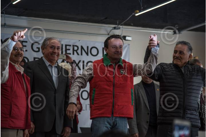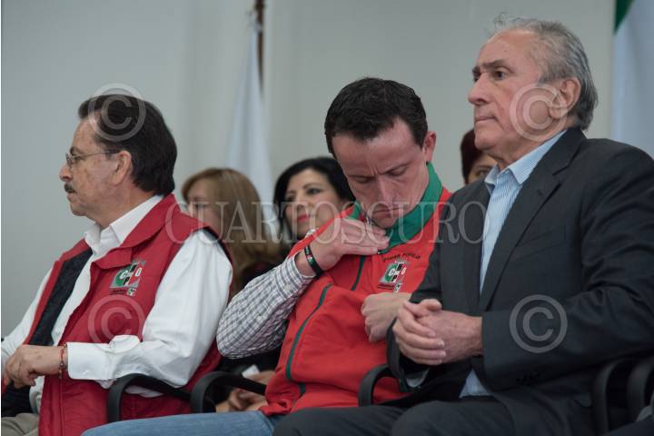 CIUDAD DE MÉXICO, 09DICIEMBRE2017.- Mikel Arriola, ex director general del Instituto Mexicano del Seguro Social (IMSS), y actual precandidato por el PRI para la gubernatura de la Ciudad de México; Joel Ayala Almeida, presidente de la FSTSE, y Arturo Zamora, secretario general de la CNOP, se reunieron, esta tarde con el sector de la Confederación Nacional de Organizaciones Populares (CNOP), para solicitar su apoyo en la precampaña del ex director del IMSS. FOTO: MARIO JASSO /CUARTOSCURO.COM