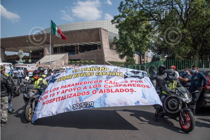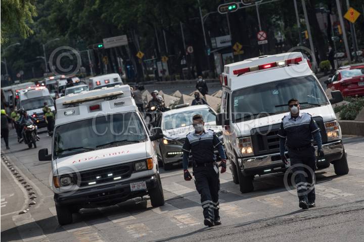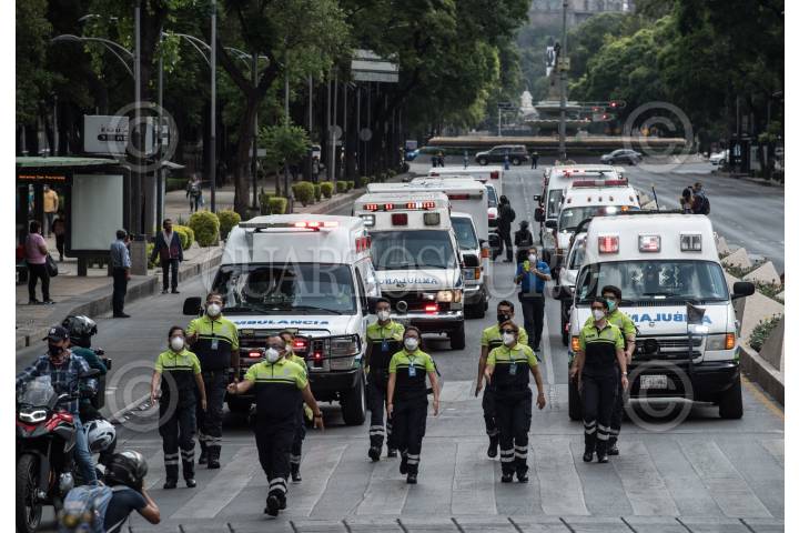 Paramédicos dan inicio en el Auditorio Nacional a la primer "marcha sobre ruedas caravana" en apoyo y homenaje a sus compañeros hospitalizados, aislados o fallecidos durante la pandemia de coronavirus (covid-19).