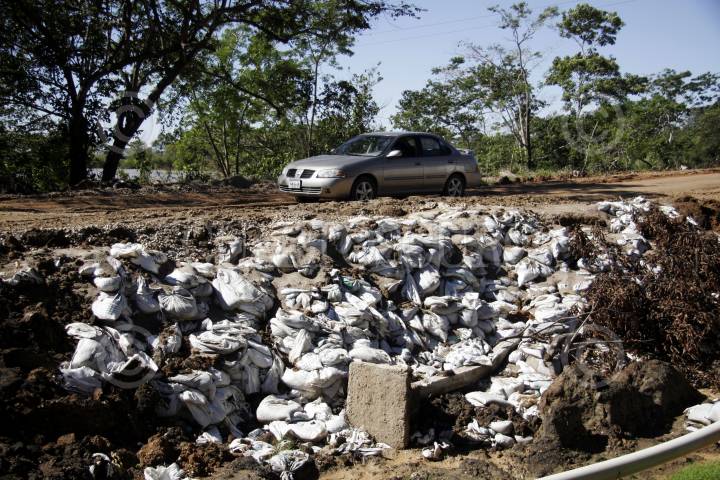 CENTRO, TABASCO, 04ENERO2008.- El paso del frente frio 18 deja sus secuelas sobre la cinta asfaltica interestatal que conduce de Villahermosa hacia las rancherías Acachapan y Colmeda, como de igual manera deja bordos rotos. FOTO: MARCO POLO GUZMÁN HERNÁNDEZ/CUARTOSCURO.COM