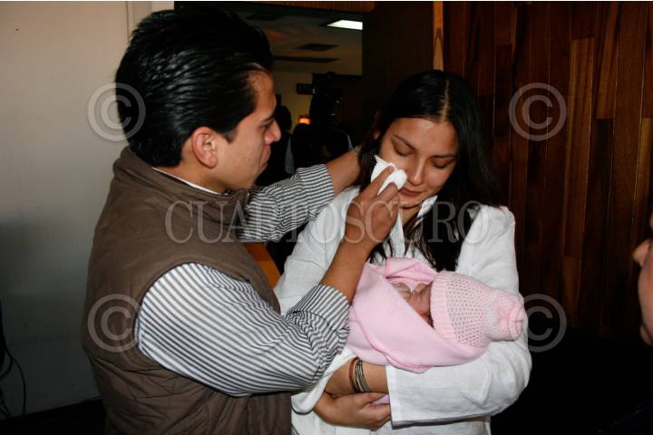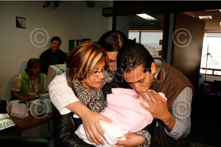 TOLUCA, ESTADO DE MÉXICO, 21ENERO2010.- Autoridades de la Procuraduría General de Justicia del Estado de México (PGJEM), entregaron a la menor Maria José Rodríguez Vilchis a sus padres Mónica Vilchis Nieves y Leonel Rodríguez Santana, la menor fue robada en días pasados por su tía en el municipio de Valle de Bravo. FOTO: LUIS CARBAYO/CUARTOSCURO.COM