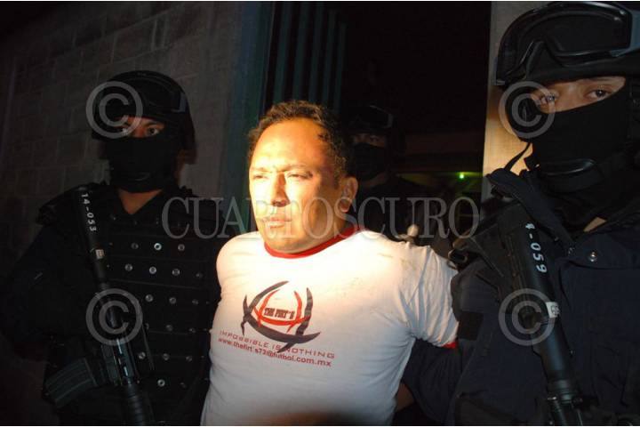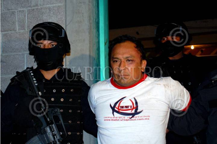 TULTEPEC, ESTADO DE MEXICO., 11SEPTIEMBRE2008.- Agentes federales capturaron la madrugada de hoy en Tultepec, Estado de México, a los integrantes de una banda de secuestradores denominada "Los Cruces" en el número 13 de la calle Amapola, colonia Jardínes de Santa Cruz. en Tultepec. En el lugar rescataron a una mujer de 19 años de edad. En la imagen Humberto Sánchez Cruz, líder del grupo, quien confesó su participación en al menos seis plagios por los que cobraba entre $500,000 y $600,000 por liberar a las víctimas. FOTO: SSPF/CUARTOSCURO.COM