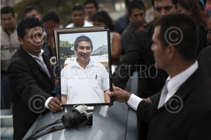 VERACRUZ, VERACRUZ., 06FEBRERO2015.- La tarde de este viernes amigos, reporteros, activistas y familiares del reportero de el periódico "La Unión de Medellín", Moisés Sánchez, le dieron el último adiós en el Panteón Particular del puerto de Veracruz. El comunicador fue secuestrado el pasado dos de enero en la congregación de El Tejar. Moisés Sánchez se convierte en el onceavo comunicador asesinado durante la administración de Javier Duarte de Ochoa. FOTO: FÉLIX MÁRQUEZ /CUARTOSCURO.COM