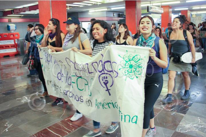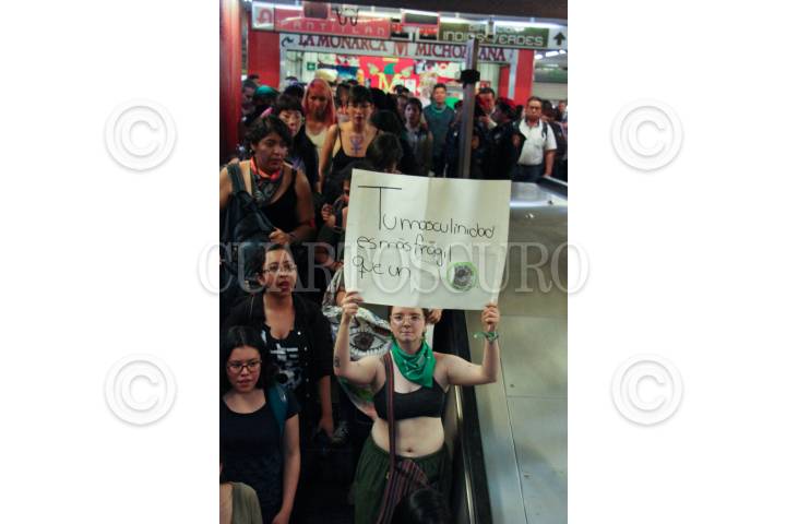 CIUDAD DE MÉXICO, 08MARZO2019.- Distintos grupos de colectivos feministas, se manifestaron en la estación de Balderas de la línea rosa del metro de la ciudad, exigiendo a las autoridades un alto a los acosos e intento de secuestros que han ocurrido en distintos puntos de la red del transporte, esto en el marco de del Día Internacional de la Mujer. FOTO: ROGELIO MORALES /CUARTOSCURO.COM