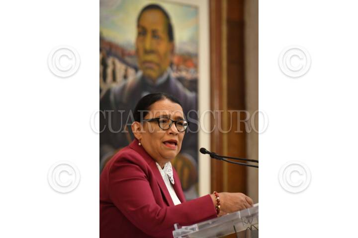 CIUDAD DE MÉXICO, 11SEPTIEMBRE2025.- Rosa Isela Rodríguez, secretaria de Gobernación, durante su participación en una conferencia en donde se anunció a Martha Lidia Pérez Gumecindo, como la nueva titular de la Comisión Nacional de Búsqueda. El acto se realizó en la Secretaría de Gobernación. FOTO: GRACIELA LÓPEZ/CUARTOSCURO.COM