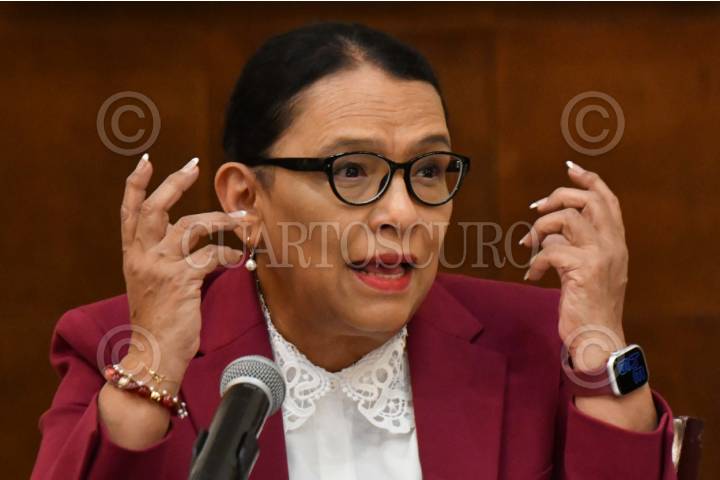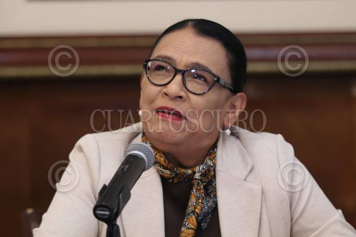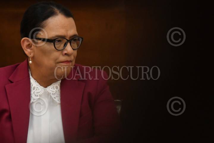 CIUDAD DE MÉXICO, 23JULIO2025.- Rosa Icela Rodríguez, secretaria de Gobernación, durante la conferencia de prensa en la que se informaron los avances sobre la construcción de la nueva Ley General en Materia de Desaparición de Personas, la cual prioriza la participación directa de colectivos de víctimas y familias de personas desaparecidas. FOTO: MARIO JASSO/CUARTOSCURO.COM