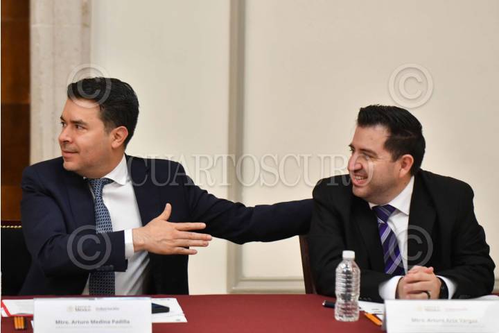 CIUDAD DE MÉXICO, 22AGOSTO2025.- Arturo Medina, subsecretario de Derechos Humanos, y Arturo Arce, director general del Registro Nacional de Población e Identidad durante la conferencia de prensa en la que se informaron avances sobre el proceso de la consulta pública de los aspirantes para la designación de la persona titular y de los trece integrantes de la Comisión Nacional de Búsqueda. Será del 28 al 30 agosto cuando se recibirán comentarios de cada uno de los postulantes y del 31 al 1 de septiembre sus entrevistas y evaluaciones finales. La conferencia fue realizada en las instalaciones de la Secretaría de Gobernación. FOTO: MARIO JASSO/CUARTOSCURO.COM