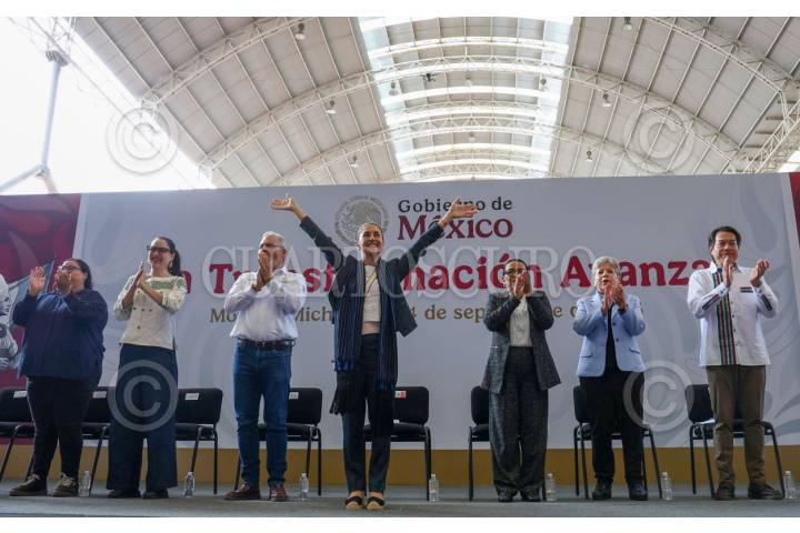 MORELIA, MICHOACÁN, 14SEPTIEMBRE2025.- Claudia Sheinbaum Pardo, Presidenta de México, encabezó ante cientos de simpatizantes el evento “La Transformación Avanza en Michoacán”, en donde ofreció dato de su Primer Informe de Gobierno. La acompañaron Alfredo Ramírez Bedolla, gobernador de Michoacán, y Rosa Icela Rodríguez, secretaria de Gobernación. FOTO: PRESIDENCIA/CUARTOSCURO.COM